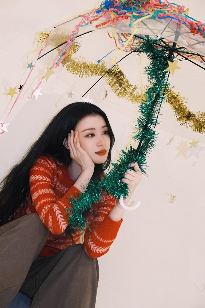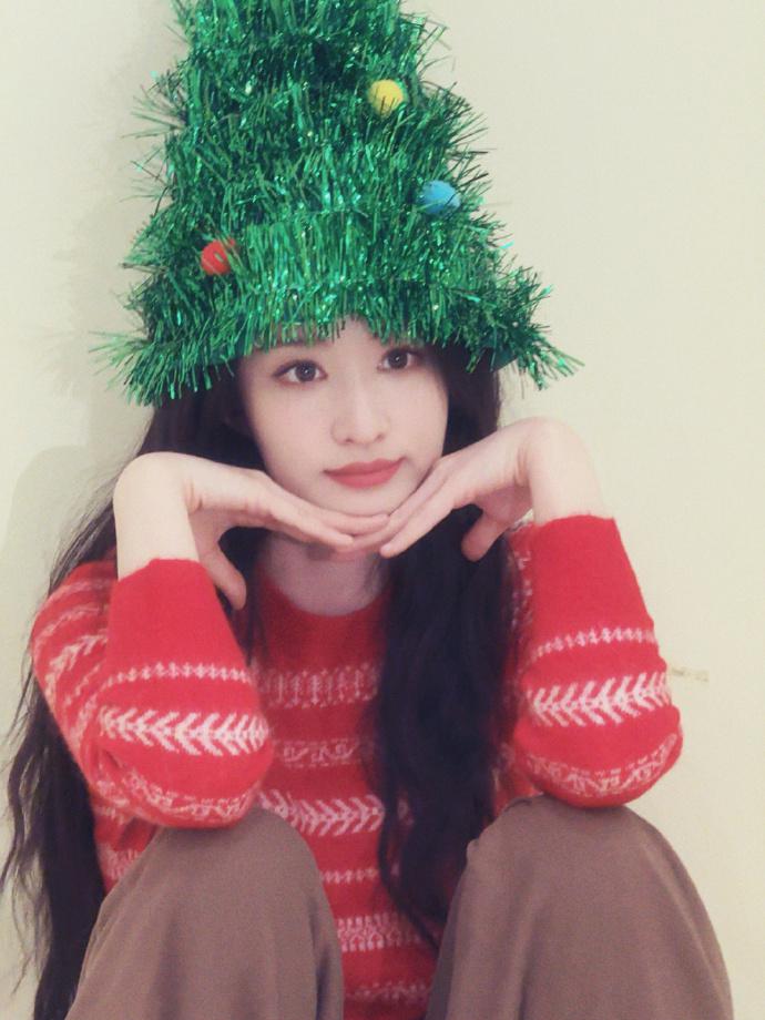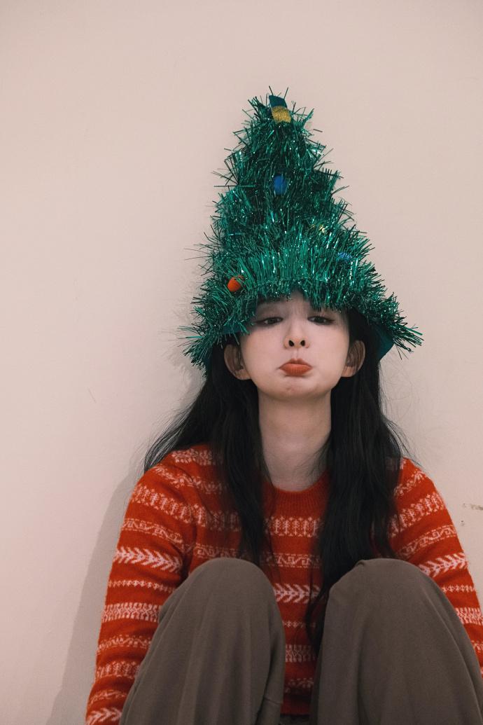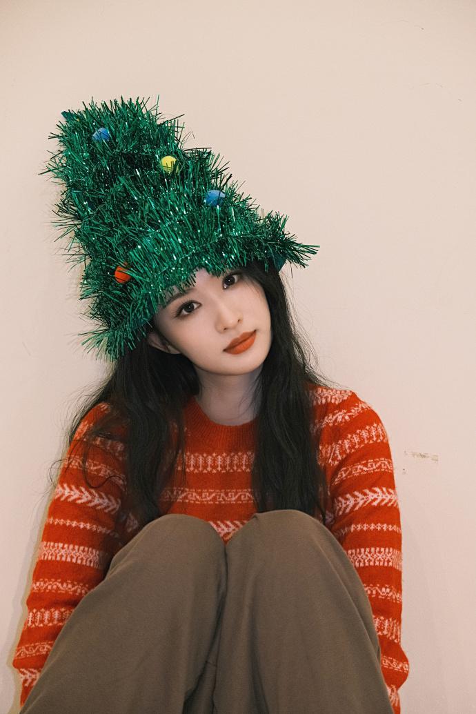 近日,王楚然分享节日氛围感照片,暖调穿搭衬得气色格外鲜亮,头戴绿装饰造型帽,表情搞怪可爱。